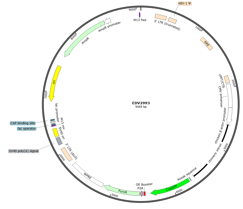 图1:pLV3-CAG-MCS-P2A-Puro骨架载体图谱